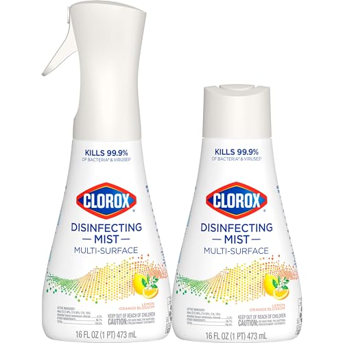 Clorox Disinfecting Mist, Multisurface Cleaner, Lemon and Orange Blossom, Sanitizing Spray & Refill, 16 Ounces(Pack of 2)