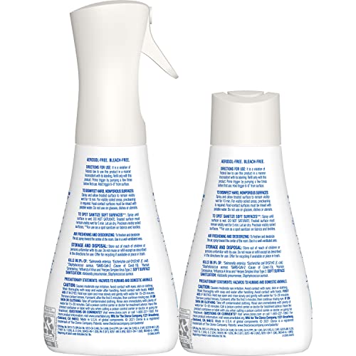 Details: This multi-surface disinfecting spray kills 99.9% of bacteria and viruses, including the virus that causes COVID-19*. Help protect your home from the spread of germs on surfaces, including during cold and flu season*, by spraying on high-touch surfaces like doorknobs, countertops* and faucets. The continuous sprayer creates a fine mist that evenly coats hard nonporous surfaces and disinfects without wiping*. It sanitizes soft surfaces like couches, car interiors and bedding. It stops odor-causing bacteria growth for up to 24 hours on non-food contact surfaces. Save plastic and help keep waste out of waste streams by using with your reusable sprayer system (sold separately). *Kills E. Coli, Staph, and SARS-CoV-2 (Human Coronavirus), on hard non-porous surfaces. Kills Klebsiella pneumoniae and Staph on soft surfaces. Use as directed. Food-contact surfaces and toys must be rinsed with potable water. Test on an inconspicuous space before use. Do not use on marble or copper.