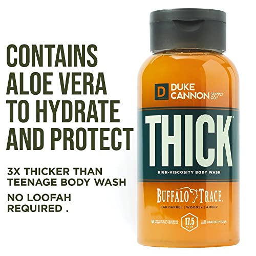 Details: Fact: teenage body washes are weak, watered down, and smell like a junior varsity locker room. Simply put, they don’t get the job done. Hard-working men require a shower of substance to accomplish a full day’s work. That’s why Duke Cannon’s THICK Body Wash is formulated with a noticeably higher viscosity and built to work effectively on your body, not spew down the shower drain. THICK Body Wash contains aloe vera to hydrate and protect and minerals to naturally exfoliate. No loofah required. Paraben, phthalate, and cruelty-free.