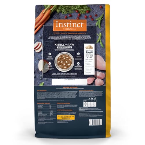 Details: Instinct Raw Boost Grain-Free Recipe with Real Chicken Dry Cat Food is a natural cat food that begins with cage-free chicken as the first ingredient, delivering high-quality animal protein in every bite. This recipe is complemented by nutrient-rich fruits and vegetables for a balanced diet. Crafted without fillers, this wholesome recipe contains no grain, potato, corn, wheat, soy, by-product meals, artificial colors, or preservatives—ensuring your cat receives only pure, clean nutrition. What makes Instinct Raw Boost unique is its combination of crunchy kibble coated in freeze-dried raw with soft freeze-dried chicken pieces mixed in. This innovative blend provides bold flavor, enhanced nutrition, and a satisfying variety of textures cats naturally crave. Distinguished by its raw-infused nutrition, Instinct Raw Boost raises the bar in both taste and health. Protein-rich chicken helps maintain strong, lean muscles, while a probiotic boost, higher omegas, and more antioxidants* support digestive health, skin & coat, and immune wellness (*compared to Instinct Original). At Instinct, we believe in the power of raw to unlock your cat’s potential. Proudly made in the USA with the finest ingredients from around the world, this recipe is fortified with essential vitamins and minerals to deliver complete and balanced nutrition for lifelong wellness.