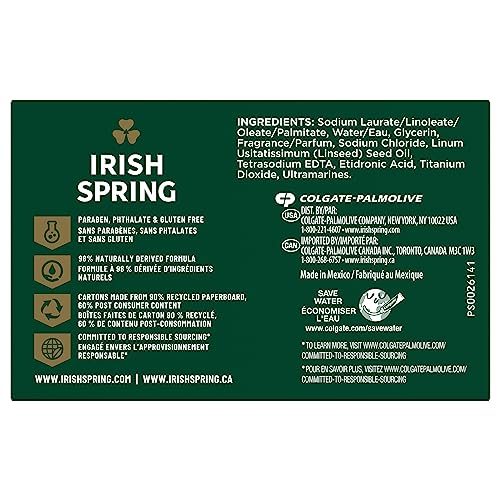 • Irish Spring soap bars are paraben and phthalate free and are made with a 98% naturally derived formula that keeps you fresh for 12 hours