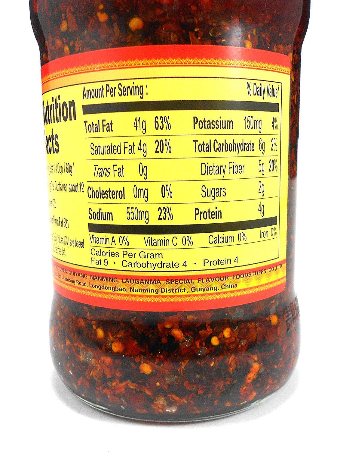 Details: Lao Gan Ma Spicy Chili Crisp adds flavor to dishes. Add Lao Gan Ma Chili oil sauce to your ramen, dumpling, pho, noodles and even pizza or hot dog. LaoGan Ma oil chili sauce is top brand product in China and is certified by China Green Food Development Center. Contains chili, canola oil, peanuts. Product of China