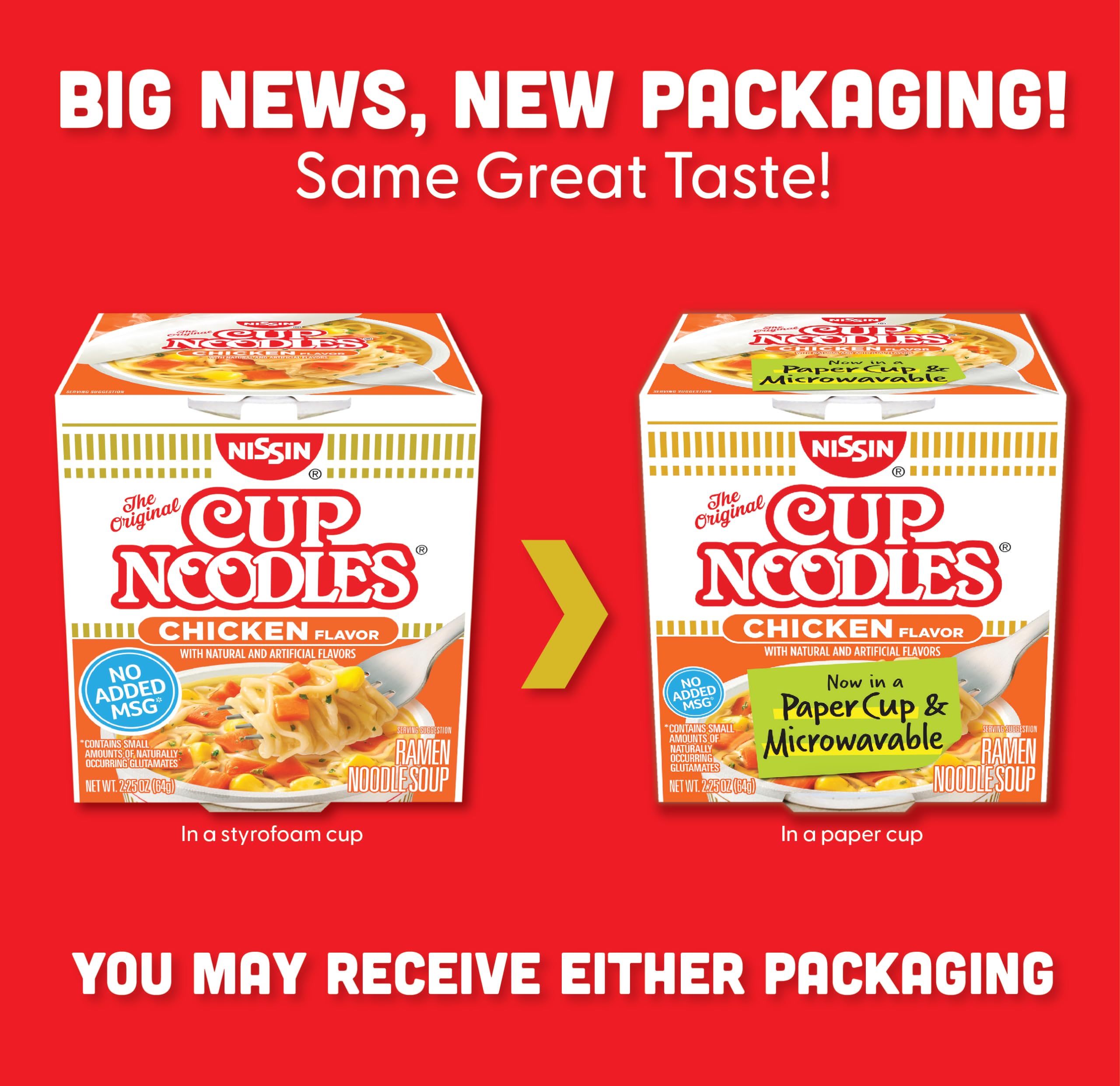 Nissin Cup Noodles Ramen Noodle Soup, Chicken, Microwaveable Paper Cup, 2.25 Ounce (Pack of 12)