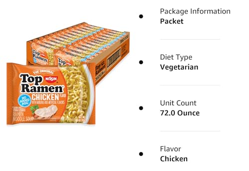 Details: THE ORIGINAL INSTANT RAMEN NOODLE SINCE 1970 Delicious as is or tossed with your favorite ingredients, Top Ramen is always a simple pleasure. With no added MSG, the great taste you love has been stripped down to its essential noodle goodness. Even vegetarians can enjoy our Soy Sauce and Chili flavors with their favorite toppings.