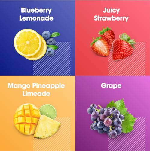 • On-the-go and lightly carbonated sparkling hydration energy drink. 4 refreshing flavors: Blueberry Lemonade, Grape, Juicy Cherry & Mango Pineapple