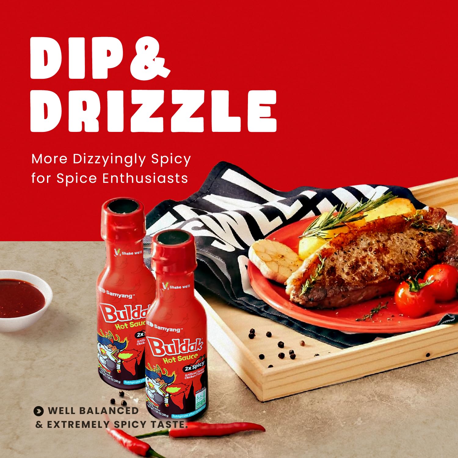 • EXTREMELY HOT BULDAK SAUCE – The spicy taste of addictive 2X Buldak has been reborn as a table sauce. It’s more intense and dizzyingly spicy. But you know, more spicy, more addicted. If you want to feel Korean extremely spicy taste, this sauce goes well with any food. From now on, enjoy the delicious taste of 2X Buldak in all dishes.